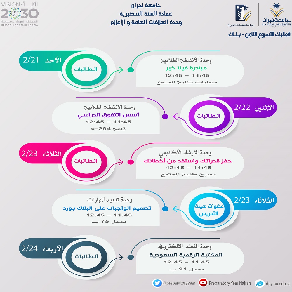null فعاليات الأسبوع الثامن للفصل الدراسي الأول 1440-1441هـ
