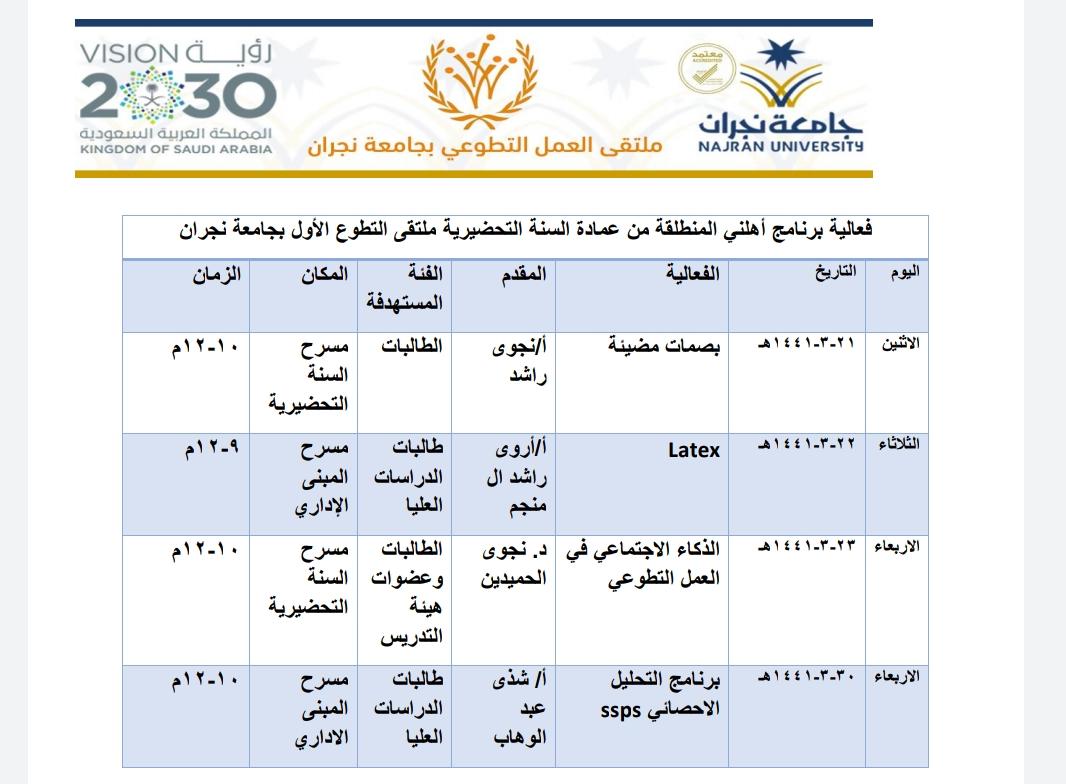 null فعالية برنامج أهلني المنطلقة من عمادة السنة التحضيرية ملتقى التطوع الأول بجامعة نجران
