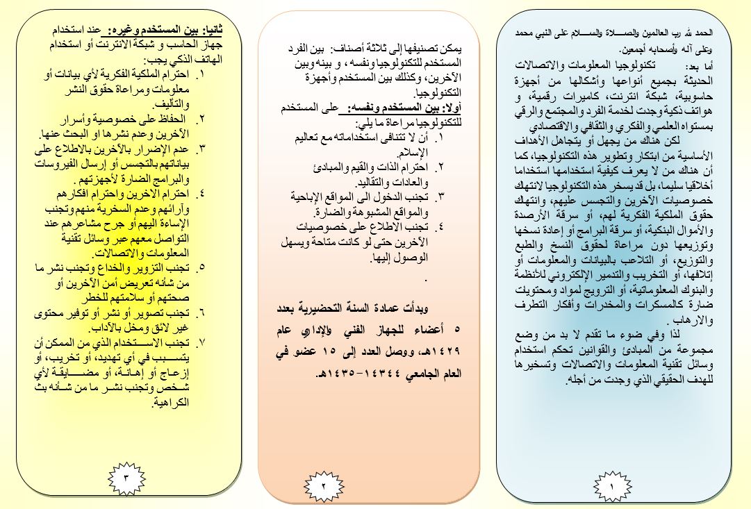 القواعد الأخلاقية لإستخدام الحاسب و الجوالات - عمادة السنة التحضيرية